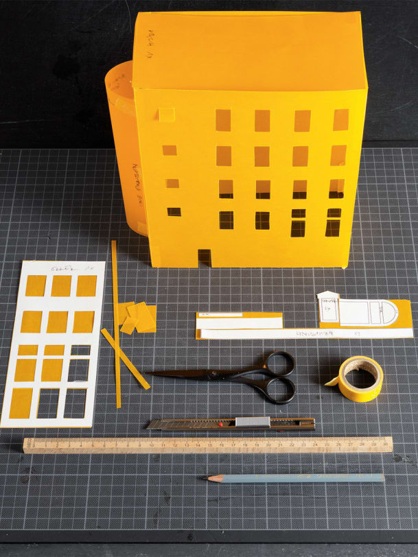 Wie soll das Haus aussehen? Ein Musterhaus aus Pergament oder Karton verschafft Gewissheit, dass alle Teile passen. Tipp: Viele kleine Fenster und ein Flachdach erleichtern das Backen und Zusammenfügen. Je einfacher der Bau ist, desto grösser der Effort für Details (Foto 1).