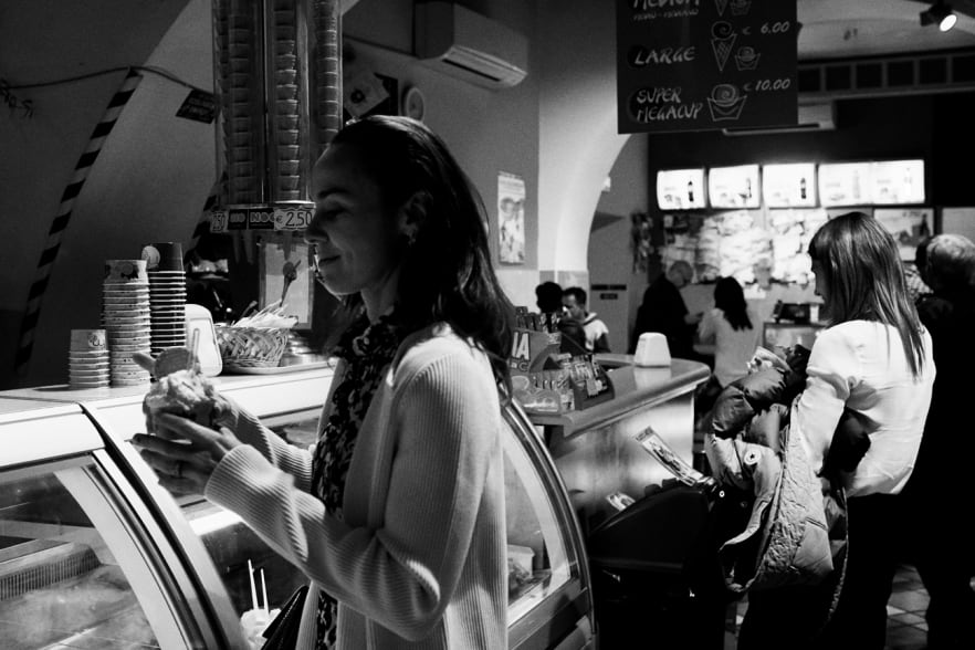 Wir fahren in die Stadt. Es dämmert, aber die Stimmung klart auf bei einem halben Liter Bier, den Martina Hingis in erstaunlich langen Schlucken trinkt. ("Wenn ich am anderen Tag kein Spiel habe, ist die Ernährung nicht so zentral. Ich schaue nur darauf, dass ich abends keine Kohlehydrate esse.") Wir sitzen in einem Brauerei-Restaurant, das uns der Fahrer des Hotels empfohlen hat. Ich bestelle Pizza – Martina Hingis meint, sie habe Lust auf Wurst, und ordert gänzlich arglos ein Gericht namens Kilometer-Wurstel. Dann geht plötzlich das Gejohle los. Das Servierpersonal schreit irgendwas auf Italienisch, fordert die anderen Gäste auf mitzusingen.
