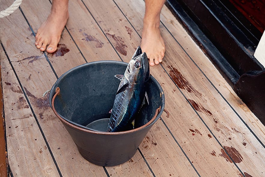 - Das frischeste Sashimi seines Lebens essen, nachdem Käpt’n Rony seine Angel ausgeworfen und ein kleiner Thunfisch angebissen hat.
