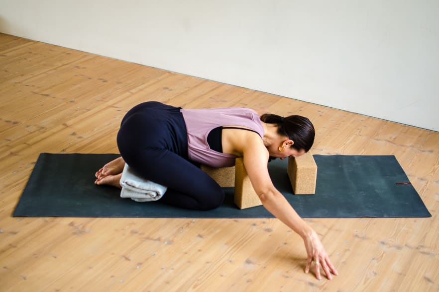 - Stellung des Kinds (Balasana) einnehmen (Abb. 1, 2), 10 lange Atemzüge