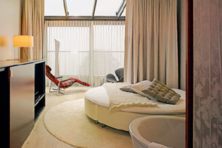 Das Hotel ist mehr Villa Kunterbunt denn durchgestyltes Designhotel und besticht durch liebevolle Details. Beim Frühstück kommt die Milch tatsächlich aus der Kuh, der Lift fährt durch eine Unterwasserlandschaft, in der Toilette hats ein Kinder-WC, und vom ersten Stock saust man per Rutschbahn an die Réception.