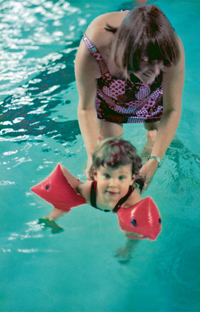 Auch das Prager Eltern-Kind-Programm will Eltern kompetenter machen – und schafft gleichzeitig Verunsicherung. Im wöchentlichen Kurs kann man die Entwicklung des eigenen Babys während des ganzen ersten Lebensjahrs von einer diplomierten "PEKiP-Fachfrau" begleiten lassen. Laut Kursausschreibung werden die Babys "mit Federn und Tüchern gestreichelt und gekitzelt, sie dürfen mit Händen und Füssen in Wasser oder Schlamm spielen und lernen über das Betasten viele verschiedene Materialien kennen". Mütter und Väter, die auf diesen doch eher banalen Input wirklich angewiesen wären, erreicht der Kurs kaum. Stattdessen lassen sich jene von den Anweisungen der Kursleiterinnen beeindrucken, die es eigentlich gar nicht nötig hätten, wenn sie nur den Mut hätten, auf ihr eigenes Gefühl zu hören. Wenn es dann an der Zeit ist, dem heranwachsenden Kind das Schwimmen beizubringen, haben die meisten Eltern bereits kapituliert. Und sind überzeugt, dass ihr Fröschchen besser von einer diplomierten Schwimmlehrerin ans Wasser "gewöhnt" wird als von ihnen selbst. In meinem kinderreichen Freundeskreis weiss ich von einem einzigen Mädchen, das mit seiner Mutter schwimmen gelernt hat. "Nach Grossmutters Methode", wie die Mama grinsend erzählt, was nichts anderes heisst, als dass sie die Flügeli einfach jedes Mal etwas weniger aufgeblasen hat.