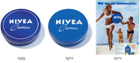 Bis 1924 war die Nivea-Crème in einer crèmefarbenen Dose verpackt. Erst 1925 erhielt die Dose ihr typisches Blau – ein weiterer Meilenstein in der Erfolgsgeschichte von Nivea. Es wäre nur logisch, eine weisse Crème, die Schneecrème heisst (nach dem lateinischen "niveus") in einer weissen Dose anzubieten. Aber nein, die Dose ist blau. Blau wie das frische Wasser, mit dem die Crème hergestellt wird. Ich bin mir sicher, dass Nivea in einer weissen Dose niemals so erfolgreich gewesen wäre wie in einer blauen. Das heutige Nivea-Blau ist eine eingetragene Farbmarke. Es ist das Unerwartete, das den Unterschied ausmacht.