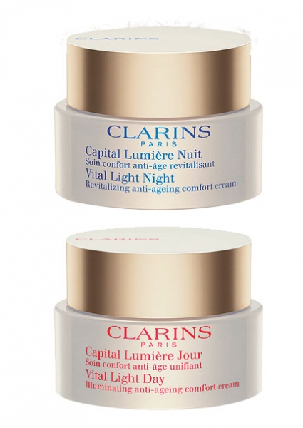 Capital Lumière von Clarins, Nachtcrème ca. 136 Fr., Tagescrème ca. 128 Fr.