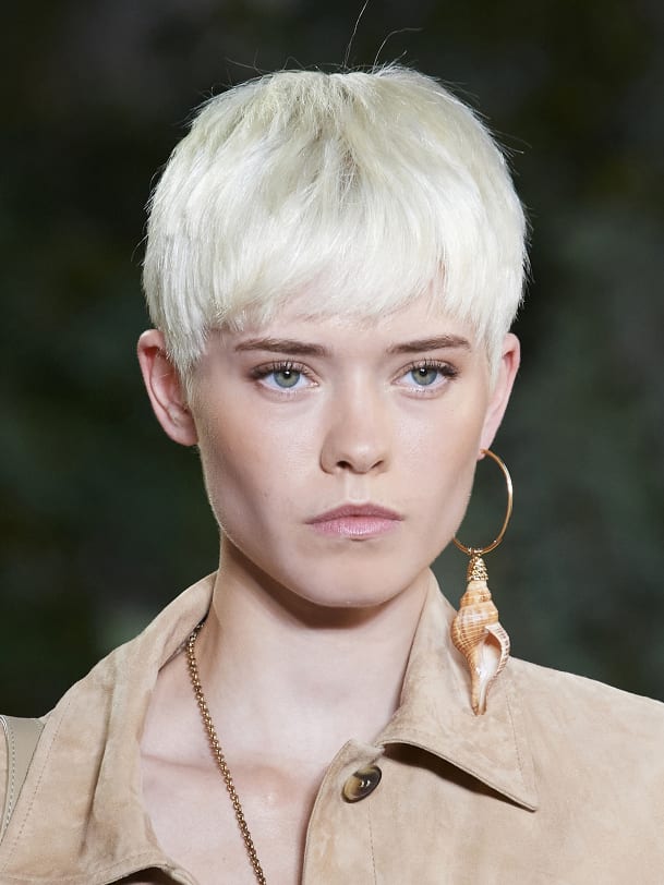 Der Mikro-Pony sorgt für eine halbfreie Stirn, was runde Gesichter länger und schmaler wirken lässt. Auch zu ovalen und eckigen Gesichtsformen passen kurze Fransen – gerade oder durchgestuft.