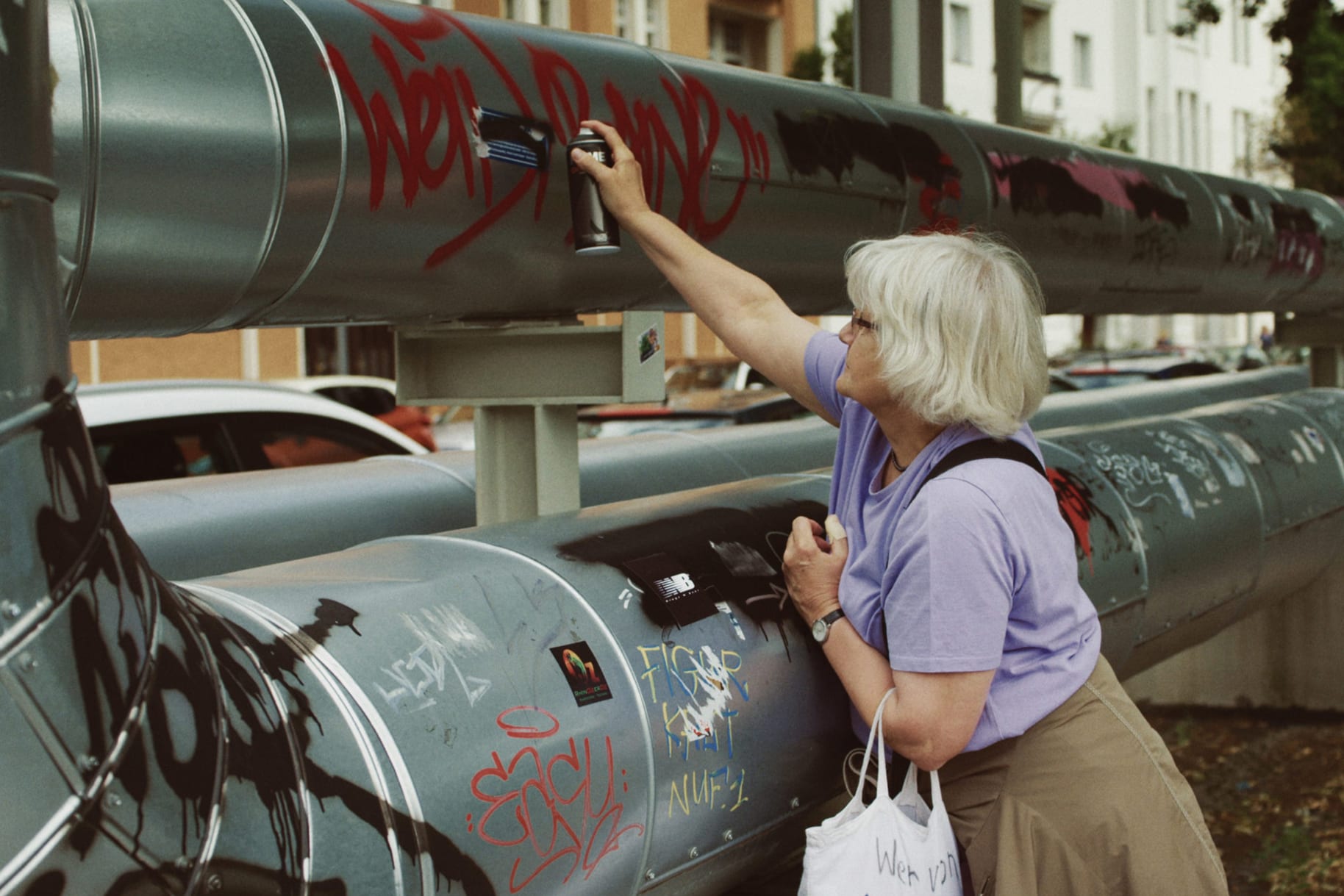 Die Porträts der drei Frauen werden mit Zwischenkapiteln über andere Amazonen verwoben: etwa Irmela, die in Berlin rechtsradikale Schmierereien und Graffiti übersprüht. Schade, dass die über 70-jährige Aktivistin verhältnismässig eher wenig vorkommt – gern hätte man mehr über sie und ihre Geschichte erfahren.