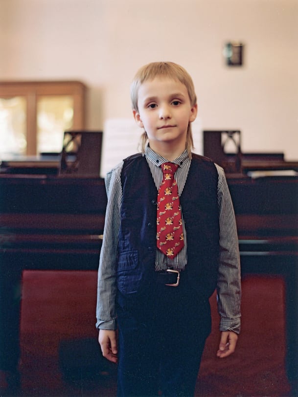 Alexandr Denisow ist acht Jahre alt und lebt bei seinen Eltern in St. Petersburg. Er trägt die Haare hinten lang und vorne kurz, die Mutter hatte ihm eine bunte Krawatte umgebunden, er lacht verlegen und klammert sich an seine Lehrerin. "Setz dich ans Klavier, Alex, spiel uns etwas vor." Lubow Rudowa wühlt in einer Schublade voller Noten. Alexandr mag Chopin, doch für Chopin sei der Bub noch viel zu jung, erst müsse er die eigenen Gefühle beherrschen können. Sie legt ihm ein Stück von Mozart vor. Alexandr spielt bedacht. Er kennt das Stück, doch tastet er sich vor, als ob er dünnes Eis betrete. Jede Note ist ein neuer Schritt, schwerelos und leicht und voller Neugierde. Seine Eltern dachten, er würde einmal Sportler werden, so impulsiv und beweglich und koordiniert er war. Als dem Gymnastiklehrer auffiel, dass Alexandr während der Turnstunden immer sang, schickten sie ihn in die lokale Musikschule. Nach der ersten Lektion erklärte Alexandr den Eltern, dass er sein Leben lang nichts anders mehr tun wolle, als Klavier zu spielen. "Alex war kein besonders guter Techniker, als er zu uns an die Schule kam", sagt Lubow Rudowa. "Aber er besass eine andere Begabung: ein grosses Verständnis für die Musik, die er spielte."