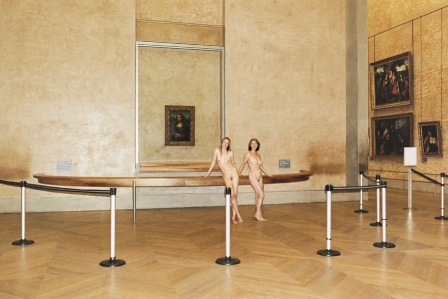 - Für Paradis standen die englische Schauspielerin Charlotte Rampling und das brasilianische Model Raquel Zimmermann in der Antikenabteilung des Pariser Louvre Modell, und traten spielerisch in Konkurrenz zu Leonardo da Vincis Mona Lisa.