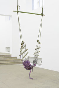 Der Zürcher ist gerade mal 25, arbeitet gern in Netzwerken und steht kurz vor dem internationalen Durchbruch. Zu seiner viel beachteten Schau im Kunstverein München hat er eine Bambusschaukel aus Bergsteigerseilen geknotet. Swing low!