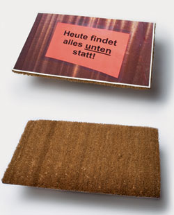 Endlos-Loop zwischen Kunst und Alltag: Stefan Burgers Fotografie klebt auf der Rückseite eines Fussabtreters. Hängt er an der Wand, bleiben die Sohlen dreckig, liegt er am Boden, verdeckt er das Foto.
