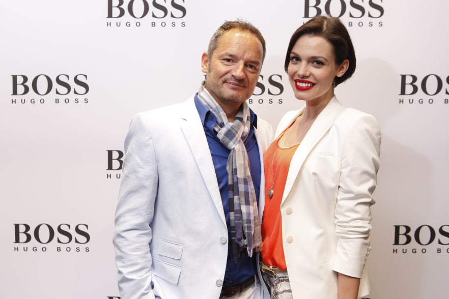 Model und Bloggerin Kristina Bazan in Boss Black, Hugo Boss Managing Director Christian Ender und Model Alizée Gaillard in Boss Black und Hugo
