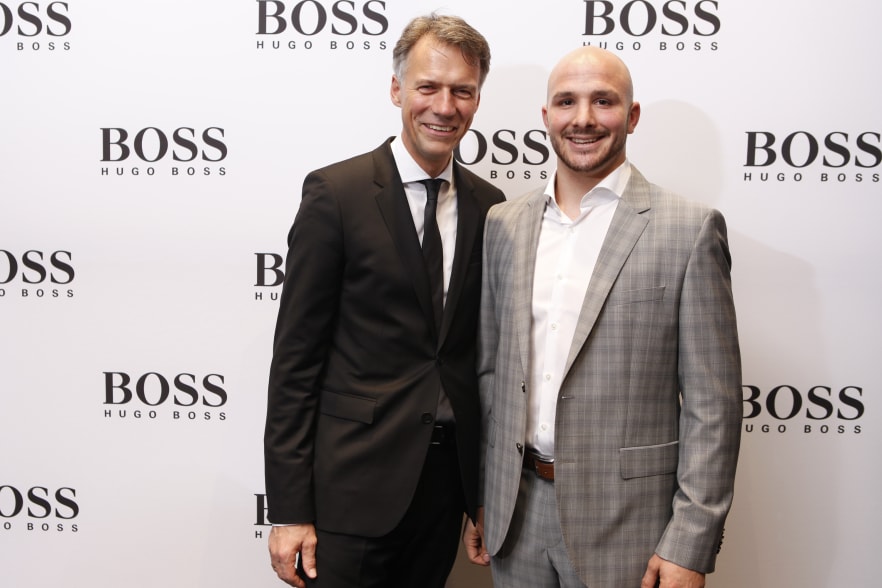 CEO der Hugo Boss AG Claus-Dietrich Lahrs und Judoka Jonathan Jaquet