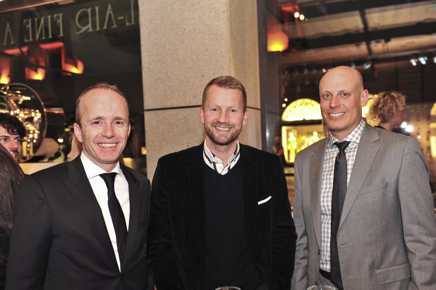 Hugo Boss Managing Director Volker Herre, Marketing Director von Procter & Gamble Prestige Gerd Von Podewils und Bill Brace (Vice President Procter & Gamble Prestige