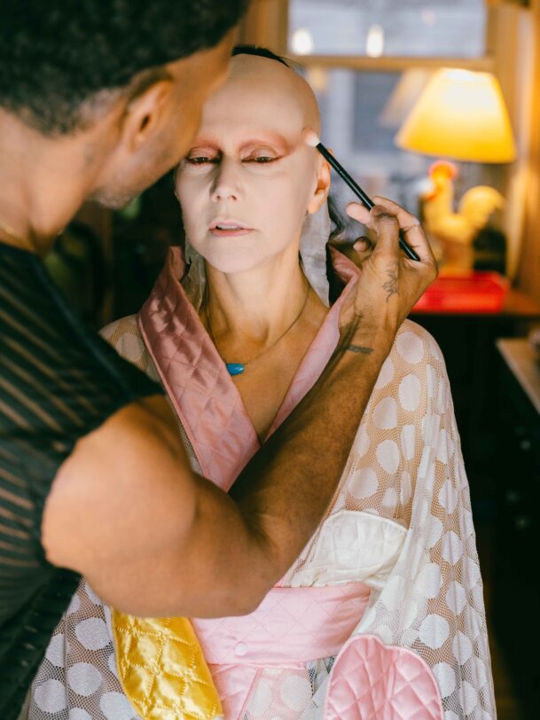 Interviewtermin, 15 Uhr, siebter Stock, beim Aufzug rechts. In ihrem Apartment liegt überall Kleidung herum, sie arbeitet derzeit an ihrer Ausstellung für das Museum für Gestaltung in Zürich. Bartsch trägt zuerst einen Kimono, läuft dann nackt herum und begrüsst alle paar Minuten jemand Neues an der Tür: es sind meistens junge schwule Männer, die sich um sie scharen wie die Motten um das Licht.