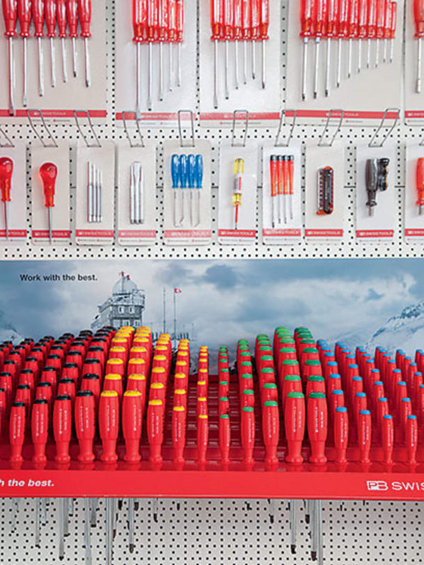 Die gesamte Palette ist im Demonstrationsraum der Firma ausgestellt: die Schraubenzieher mit den roten Griffen, die Drehmomentwerkzeuge, die Rätschen, Hämmer und Ahlen, das Bike Tool für Velofahrer und das Pocket Tool für Handtaschen – ein Kaleidoskop aus Formen, Farben und technischen Finessen, das eine Besucherin, die sich nur rudimentär mit Werkzeugen auskennt, schwindlig macht.