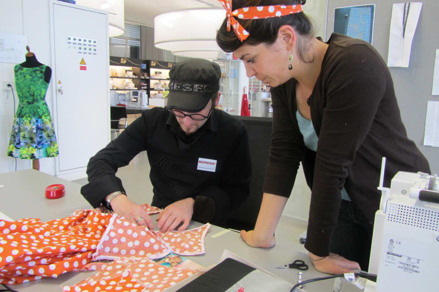 Der Designer Mathias Ackermann verhalf annabelle-Leserinnen im Bernina-Workshop in Steckborn zu einem trendigen Sommerkleid mit Blumenmuster im Stil der Fünfziger. Der Schnitt wurde von der annabelle-Moderadaktion ausgewählt und folgt den aktuellen Laufstegtrends. Genäht wurden die Kleider unter fachkundiger Anleitung mit den neuesten Nähmaschinen von Bernina, und übernachtet wurde im schönen Seehotel Feldbach in Steckborn TG.