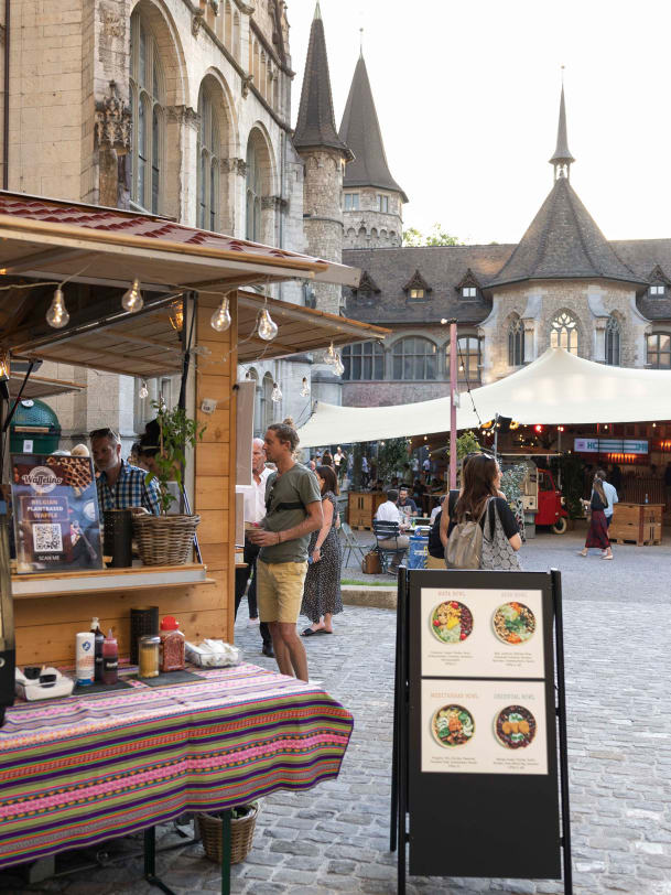 Mit dem Hofkino wird ein junges Konzept weitergeführt und ausgeweitet: Vom 15. Juni bis 9. Juli jeweils von 10 bis 24 Uhr lädt der Innenhof des Landesmuseum Zürich ganztags ein zum Verweilen mit Kaffee, vegan Lunch & Dinner, Apéro und Afterwork-Drinks oder Cocktails an der Davide Campari Bar.