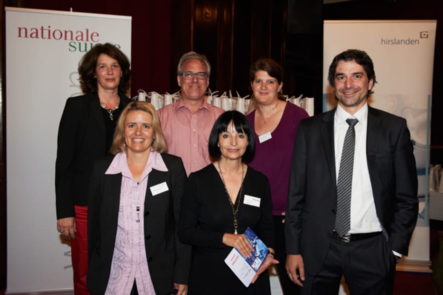 (Obere dreierreihe v.l.n.r.) Marlene Emch, Nationale Suisse, Wolfgang Burri, Nationale Suisse, Jessica Wyss, Nationale Suisse (untere dreierreihe v.l.n.r.) Jenny Reichert, Nationale Suisse, Clivia Koch, Präsidentin Verband Wirtschaftsfrauen Schweiz mit Marco Burri, Hirslanden