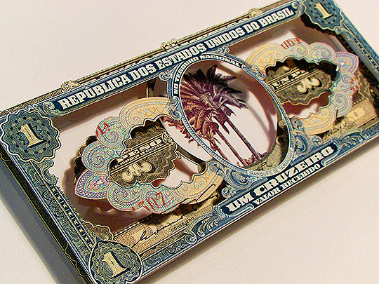 Rodrigo Torres (geb. 1982) macht Geld zu Kunst – und umgekehrt. Die virtuosen Collagen und Scherenschnitte aus Banknoten sind wie ein Kommentar zur boomenden Wirtschaft seines Heimatlandes Brasilien. (Art Feature, A Gentil Carrioca)