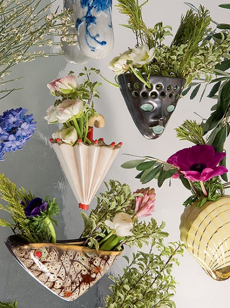 Gitte Schäfer (geb. 1972) gewinnt der Konzeptkunst mit ihrer üppigen "Blumenmauer" aus Spiegeln, Pflanzen und gebrauchten Vasen sinnliche Seiten ab. (Art Statements, Lullin + Ferrari)