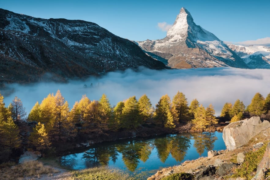Der Fünf-Seen-Weg bei Zermatt bietet einen Ausblick der Superlative auf die Walliser Bergwelt. In drei der fünf Bergseen spiegelt sich das stolze Matterhorn. Die Aussicht auf den berühmtesten Viertausender ist einmalig, die Wanderroute sehr abwechslungsreich und die ganze Szenerie garantiert instagrammable, denn: Der Kontrast mit den grün-gelben Tannen, den blauen Seen und den imposanten Felsen eignet sich bestens fürs Fotografieren.