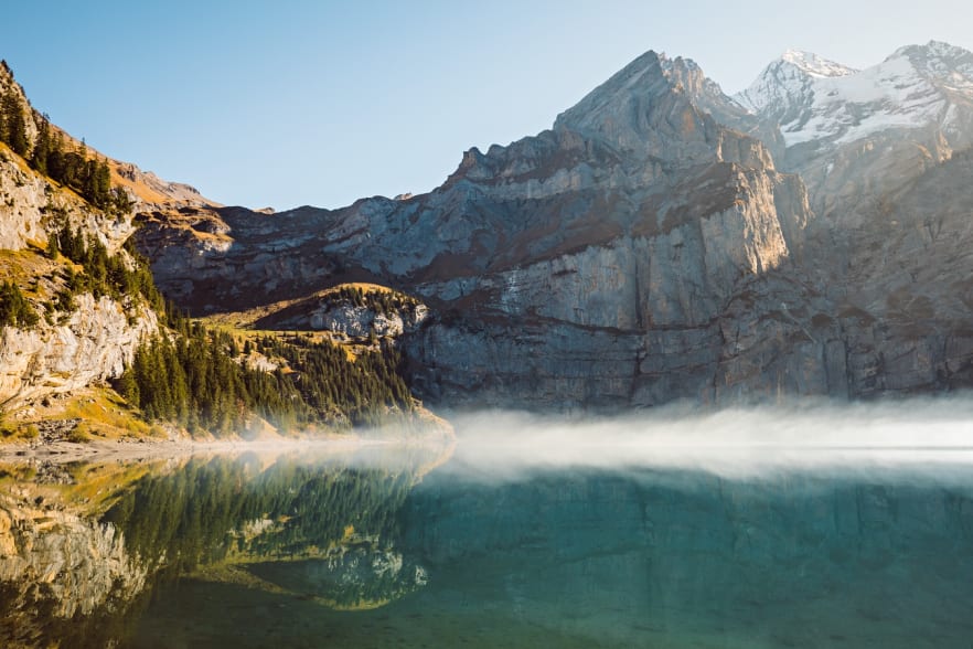 Der Oeschinensee im Kanton Bern ist der Streber unter den Bergseen. In einem perfekten Türkiston liegt er vorbildlich eingebettet zwischen beeindruckenden Felswänden. Besonders gut lässt er sich vom Panoramaweg Heuberg bestaunen. Unterwegs befinden sich Restaurants und Alphütten zur Verpflegung. Für Hartgesottene: Ein kühles Bad rundet die Wanderung ab.