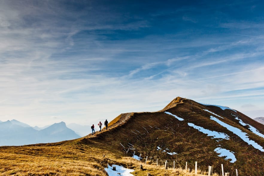 Wer von Panorama-Erlebnissen gar nicht genug bekommen kann, der wandert auf dem Gratweg vom Klingenstock zum Fronalpstock. Die Schwyzer Berge, die Urner Gipfel und die Glarner Spitzen buhlen um Ihre Aufmerksamkeit. Und der Gratweg hält, was sein Name verspricht: Senkrecht unten links liegt der Vierwaldstättersee, rechts fällt der Blick ab ins Muotatal.