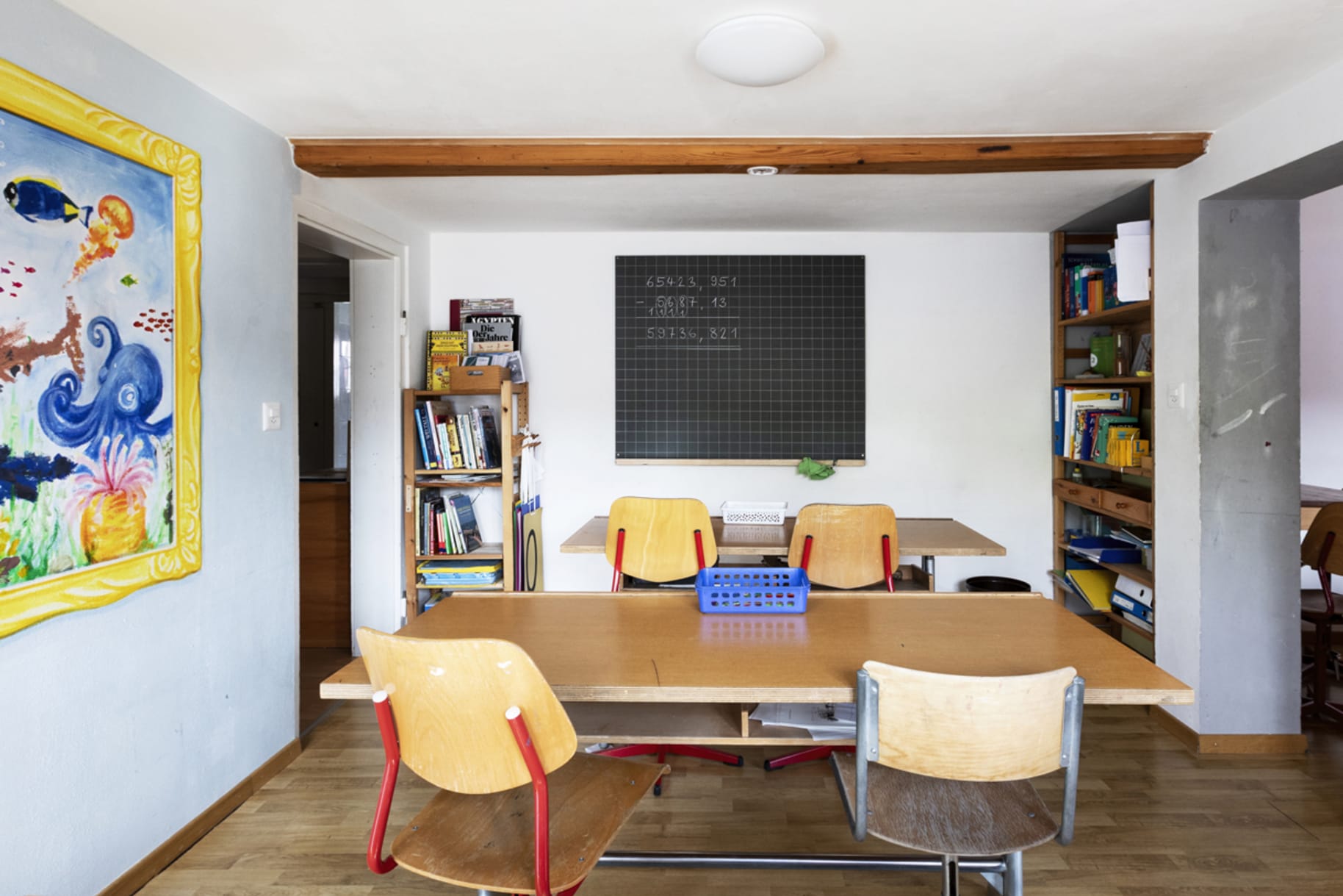 Nach dem Austausch in der Runde dürfen sich die Gäste in der Schule umsehen. Gestartet wird in der Basisstufe, also bei den Kindern zwischen vier und acht Jahren. Ein Paar aus dem Tirol begutachtet den Bewegungsraum, in dem Kinder herumtoben. Es plant, demnächst nach Degersheim zu ziehen. Auch, damit die Kinder hier zur Schule gehen können. Die Primarstufe für Kinder zwischen 7 und 13 Jahren befindet sich wenige Meter entfernt im Haus mit der rotbraunen Holzverkleidung. In der Leseecke wird dort Schach gespielt, während im Nähatelier ein Stockwerk weiter unten drei Mädchen beschliessen, draussen "Pferde zu spielen".