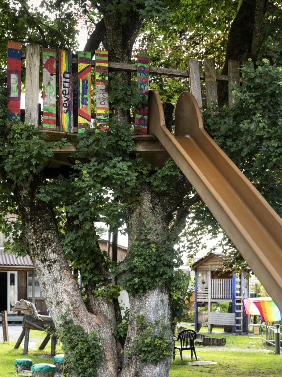 Das "Bullerbü"-Gefühl stellt sich am Bahnhof Degersheim SG noch nicht ein, sondern erst dann, wenn man an einer Jurte vorbei auf das Monterana- Schulgelände mit dem bunten Baumhaus gelangt. Es ist Schnuppertag, im Pavillon haben sich Eltern und Lehrpersonen im Kreis versammelt.