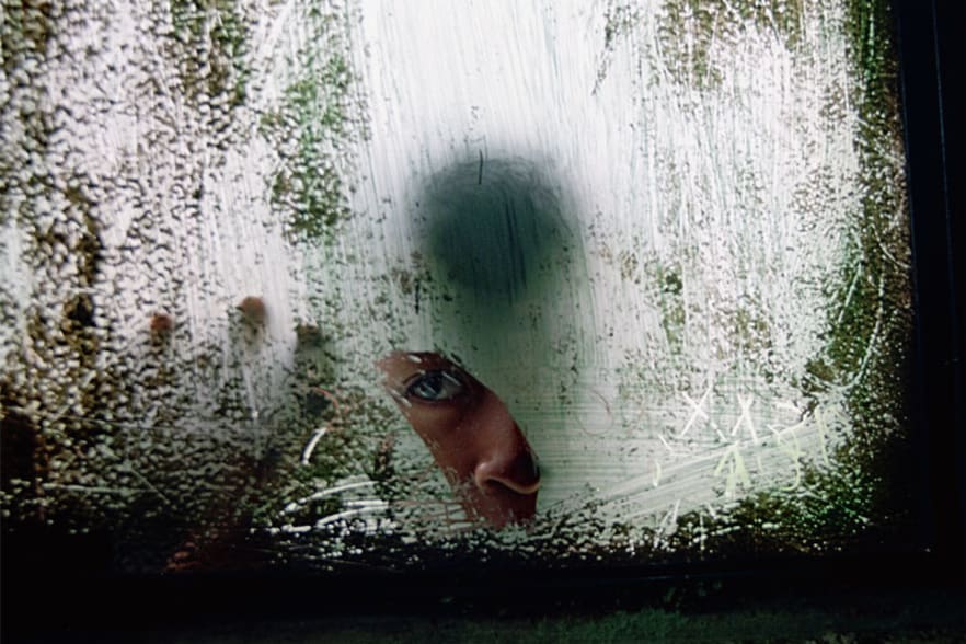 Angst und Neugier: Ein kleiner Augenzeuge späht durch ein Guckloch