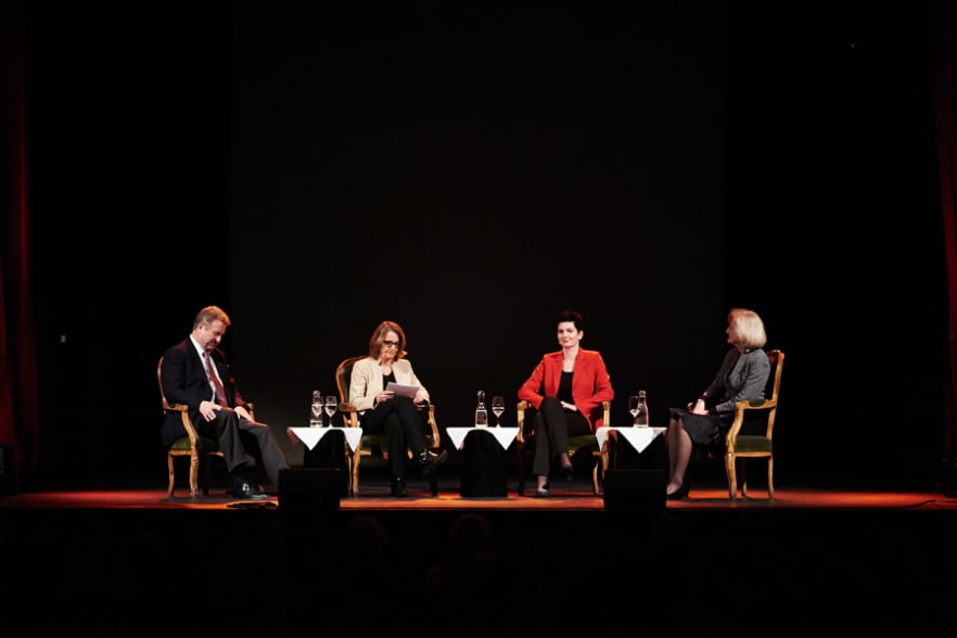 Die Podiumsteilnehmer (v. l.): Bjørn Johansson, Sonja Hasler, Petra Wüst, Gisela Müller.