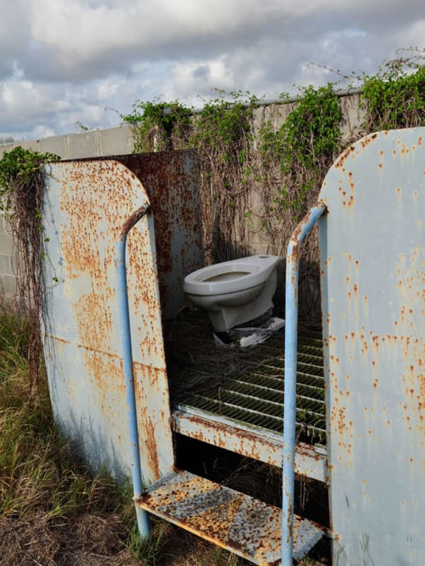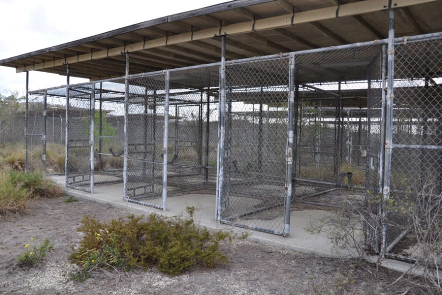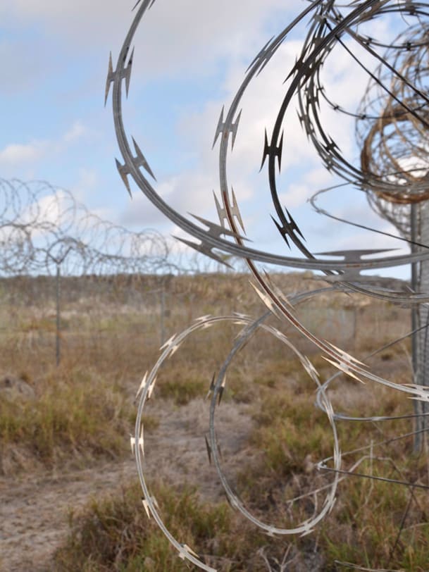 Das Camp liegt in der Nähe der kubanischen Grenze in einer Talsohle, eingebettet in üppiges Grün und sanfte Hügel. Von der Strasse aus ist es kaum sichtbar, erst wenn man näher kommt, treten Gitterzäune, morsche Wachtürme und wuchtige Stacheldrahtspiralen hervor, die versehen sind mit rasiermesserähnlichen Klingen, Razor Wire im Fachjargon. Unser Begleiter, ein junger Staff Sergeant, schliesst das Tor auf. Vor uns erstreckt sich ein flach getretener Graspfad, der schnurgerade zwischen den Käfigen hindurchführt: quadratische Gehege mit Gitterdach, Betonboden und – jeweils auf Hüfthöhe montiert – eine Art umgedrehte Taschenlampe: das Pissoir. Auf etwa ein Dutzend Zellen kommen drei Duschen, auch sie in Käfigen eingelassen. Hinter der Käfigsiedlung sind fünf Blockhäuser zu sehen, die aus der Ferne fast idyllisch wirken. Dorthin wurden die Gefangenen zu den "Interviews" geführt, wie das offiziell heisst. Es waren auch Folterräume.