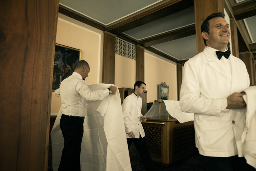 … die Tische im prächtigen Speisesaal weggerollt (im Bild: Ivano Mazzoleni, Head Waiter) …