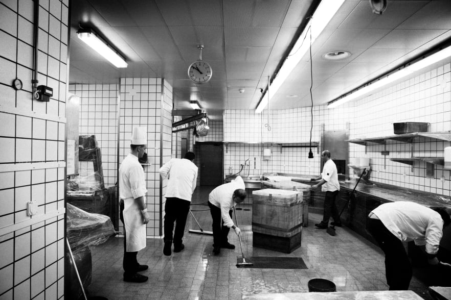 Innerhalb eines Tages wird der gesamte Küchenbereich gereinigt, auf Hochglanz poliert ...