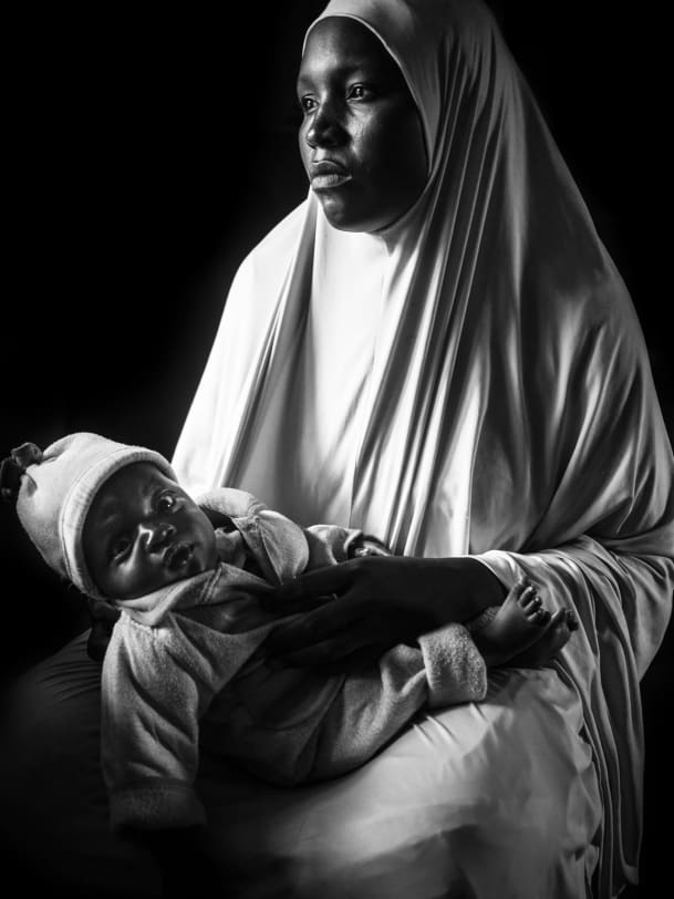 Sadiya (31) ist die Mutter von Talatu. Ihr Mann, ein Lastwagenfahrer, starb bei einem Unfall. Mit ihm hatte sie sieben Kinder. Im Lager "Tor 1" im Sambisa-Wald wurde sie mit einem Boko-Haram-Kämpfer verheiratet, von dem sie nun schwanger ist. Sie will das Kind behalten. "Ich will es nicht töten. Ich will mich nicht schuldig machen. Viele Leute raten mir zur Abtreibung. In meinem Dorf kamen Männer der Selbstverteidungsmiliz zu unserem Haus und sagten: ‹Wenn es ein Junge wird, werden wir ihn töten, weil er später auch ein Boko-Haram-Kämpfer werden wird.›"
