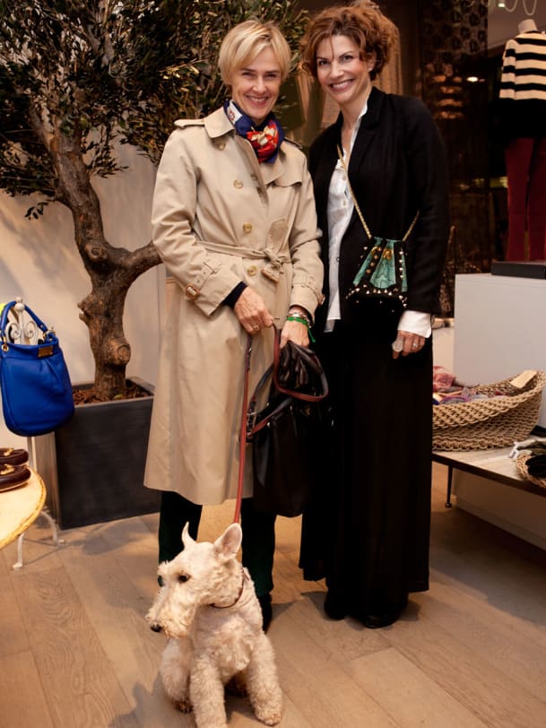 annabelle Chefredaktorin Lisa Feldmann (l.) mit Laurence Antiglio, Geschäftsführerin Vestibule und dem hübschen Vierbeiner Louis