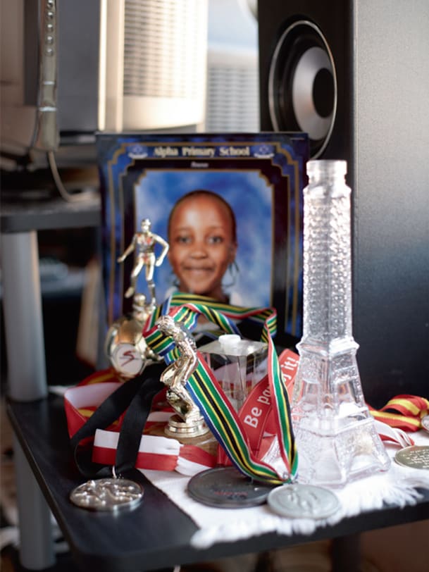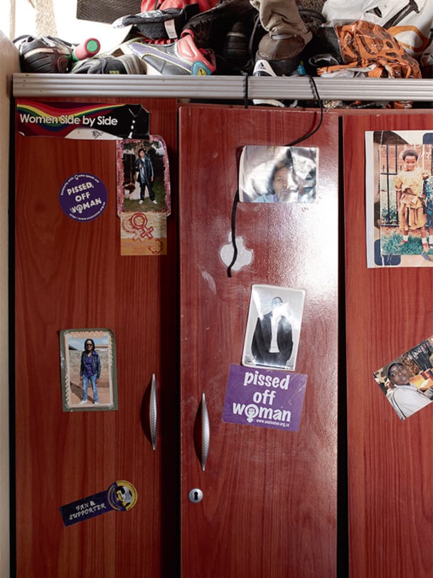 Nur wenige können es sich leisten wegzuziehen – für Thuli Ncube gibt es keine Alternative. Sie zeigt uns ihr Zimmer, eine Baracke im Hinterhof des Hauses. Ein Bett, zwei Schränke, Kartonschachteln, Fussballschuhe, eine Trainingstasche. Thuli spielte schon als Kind Fussball. "Puppen interessierten mich nicht." Von der Decke hängt eine nackte Glühbirne, neben dem Fernseher steht ein gerahmtes Foto ihrer Tochter. Alles ist sauber und aufgeräumt. Wir setzen uns aufs Bett. Vom Zimmer ihres Bruders dröhnt lauter Hip-Hop herüber. Thuli Ncube beginnt zu erzählen, mit einer Stimme so dünn wie ein frisch gesponnener Seidenfaden.