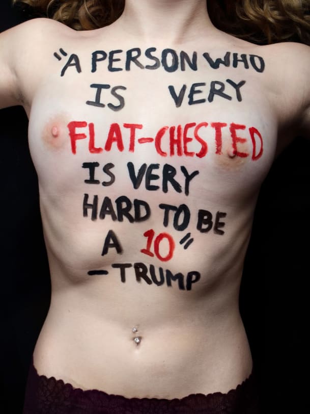 Die Amerikanerin Aria Watson inszeniert mit ihrem Kunstprojekt #SignedByTrump Zitate des künftigen US-Präsidenten Donald Trump auf nackter Haut und gibt damit nicht nur Frauen, sondern auch einer ganzen Generation von nicht wahlberechtigten Millennials eine Stimme.