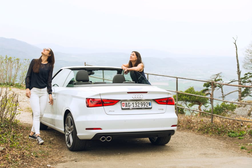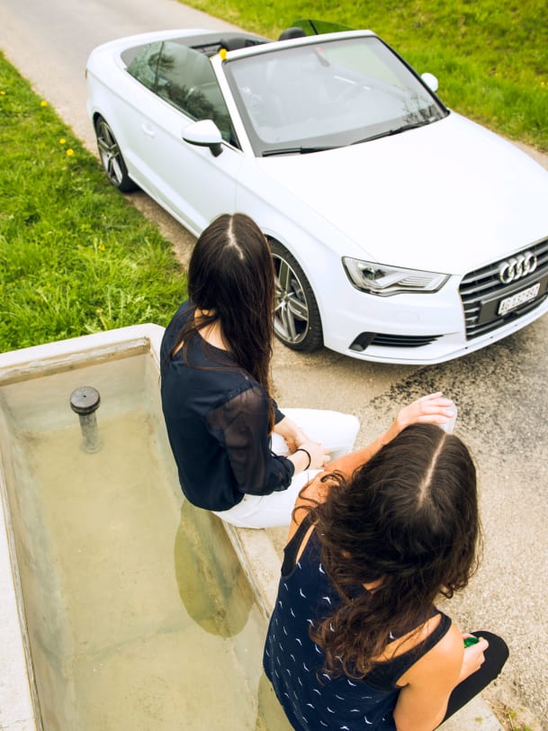 Meine Gefühle für dieses Auto haben sich langsam entwickelt. Prollig, befand ich, als ich das Cabrio zum ersten Mal sah. Mit dieser Farbe – Gletscherweiss –, den silbernen Armaturen, den Sportsitzen und der tiefergelegten Karosserie. Ein Gefährt, das regelrecht nach Aufmerksamkeit schreit. Bisher war Autofahren für mich eine private Angelegenheit. Der Wagen ein Ort, an dem ich Dinge tun kann, die niemand hören soll: Lästern, fluchen, sehr laut singen. Alles in einer vermeintlich undurchlässigen Blechkugel. Im Cabrio geht das nicht. Da bist du ausgestellt im blendend weissen Wagen, da nimmst du aktiv teil am Leben auf der Strasse. Da gibts keinen Rückzug, sondern nur Präsentation. Gut, dass sich Freundin Anne-Sophie anerboten hat, uns zu begleiten. "Ist doch toll", fand sie, "fahren wir an die Sonne!" Die Sonne haben wir an diesem Tag zwar nicht gefunden. Wohl aber die Freude am Audi A3 Cabrio Ambition – und am öffentlichen Auftritt.