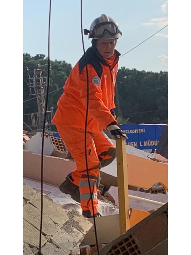 "Gerade sind wir in Hatay im Einsatz, das ist eine Provinz im Süden der Türkei. Das Ausmass der Verwüstung ist unvorstellbar. Ganze Strassenzüge sind komplett zerstört. Sechsstöckige Häuser sind völlig in sich zusammengestürzt. Wir sind mit acht Hunden hierhergekommen. Unsere Aufgabe ist es, so viele Menschen wie möglich lebend aus den Trümmern zu retten.
