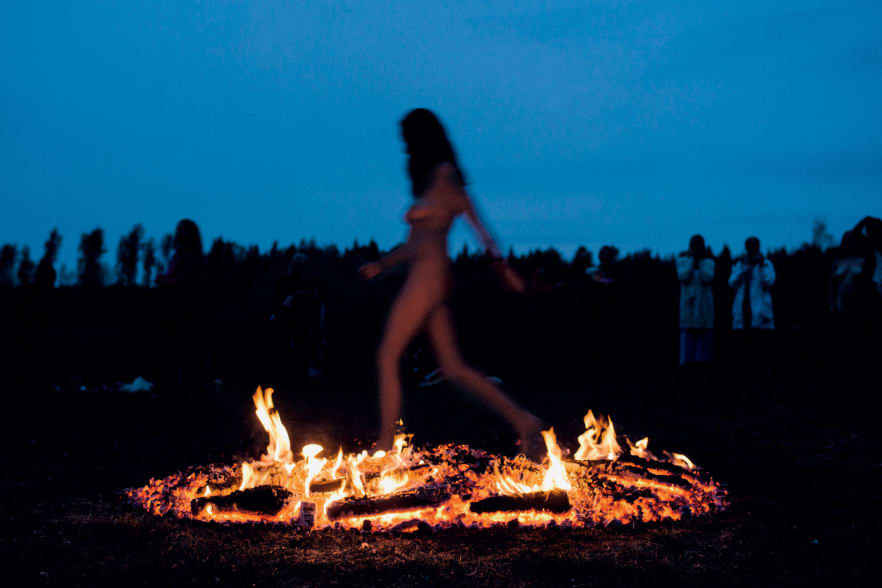 Am "Sacred Womb Festival" im schwedischen Ängsbacka haben diese Frauen gerade eine Naturmeditation mit orgasmischer Atmung hinter sich. Noch beseelt von diesem Ritual kriechen sie auf allen vieren zum nächsten Fotoshooting mit Elin Berge, statt zu gehen.