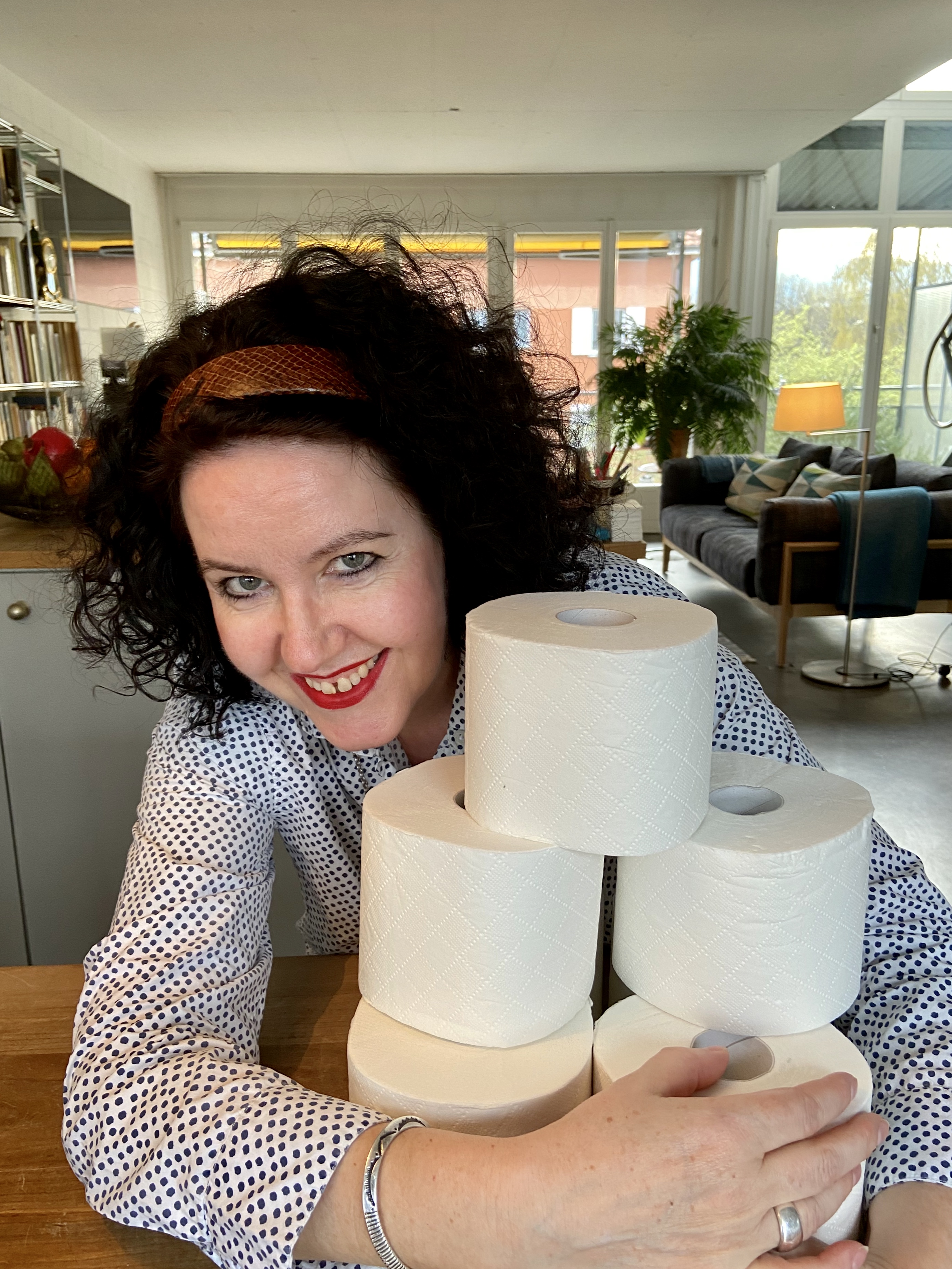 Eine Nachbarin hat heute Geburtstag. Um 18 Uhr hat sie im kleinen Kreis zum Social-Distancing-Apéro auf dem Laubengang eingeladen. Ich weiss schon, was ich ihr schenke: eine Rolle WC-Papier in güldener Geschenkverpackung. Darüber freut sich heutzutage jeder!