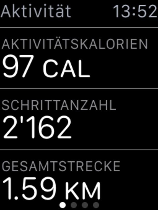Da ich die Uhr jeweils über Nacht auflade an der Ladestation in der Küche, verpasst das Aktivitätenprotokoll meine morgendlichen vom Spiegel-zum-Schrank-Tippeleien und das dazugehörige Treppensteigen. Es liegt also bestimmt daran, dass ich die Kalorien nicht verbrauche. Würde ich die Watch gleich beim Aufstehen anziehen ...