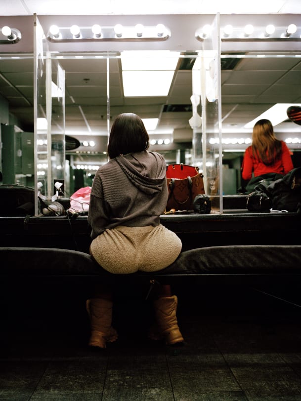 Die holländische Fotografin Hajar Benjida begann 2018, diese Frauen zu porträtieren. In ihrer Bildserie "Atlanta Made Us Famous" sieht man die Tänzerinnen backstage, zuhause, beim Stillen, beim Geldzählen – es sind maximal posierte Fotos, die Frauen tragen Make-up und Bühnen-Outfits und trotzdem scheinen sie mehr preiszugeben von sich, als wenn sie nackt auf der Bühne tanzen.