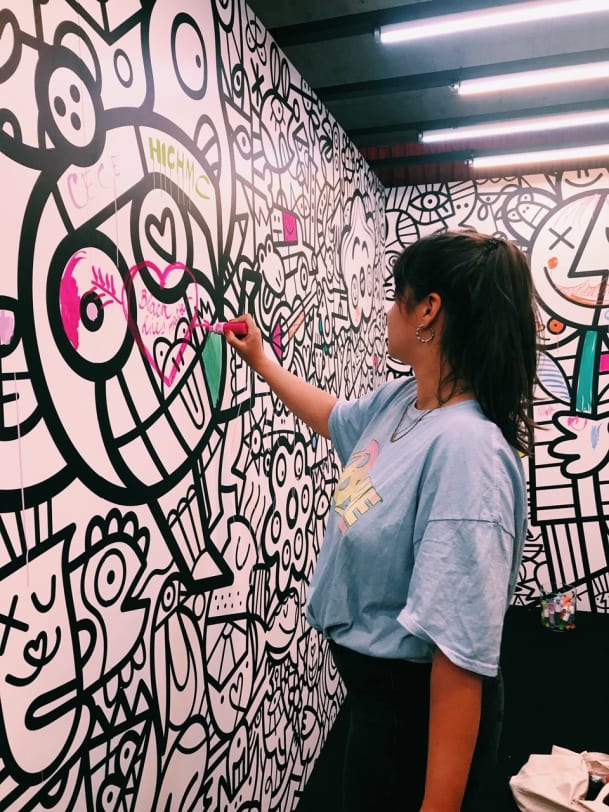 Wir merken anhand der "Besetzt"-Schilder an den Türen schnell, dass gewisse Zimmer bei den Besuchern besonders beliebt sind (der triste Papp-Dino gehört nicht dazu). Wir unterbrechen zwei Teenie-Girls, die gerade ein Foto-Shooting in einem Raum voller Luftballons machen und höflich warten, bis wir uns umgesehen haben und uns wieder verziehen. Im Gang begegnen wir immer wieder mal Influencern, die sich mit ihrer Fotografin Bilder auf dem Kameradisplay ansehen und über die nächste Location sprechen. Zwei Teenagerinnen machen die Tür zum Ausmal-Raum auf und verwerfen ihn schnell wieder. "Isch voll nöd schön da", sagt eine zu ihrer Freundin. Das Gute: Im Nu findet sich eine neue Location, die besser zum eigenen Insta-Feed passt.