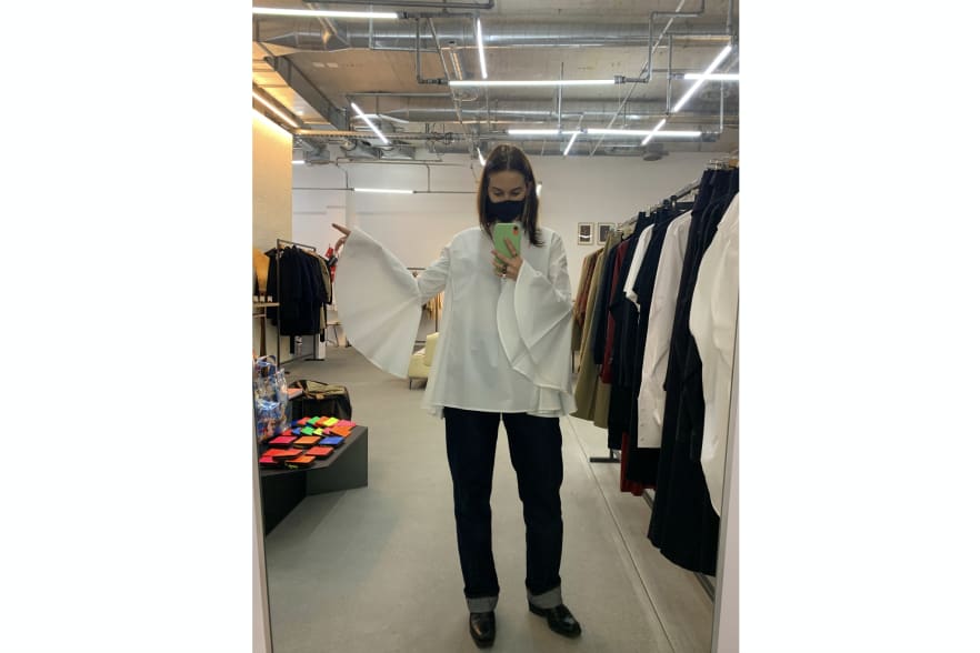 Zugegeben: Vom grossartig kuratierten Sortiment von Opia könnte ich mich das ganze Jahr über inspirieren lassen – nicht nur zu Weihnachten. Meine Auswahl fiel schliesslich auf diese weisse Baumwollbluse von William Fan – einem meiner Lieblingslabels. Weisse Bluse, das klingt ja erst mal unspektaktulär. Das ist mein Pick von Opia dank der eleganten Ärmel aber definitiv nicht. Dieses Details sorgt für exakt die feminine Note, die ich wollte. Damit glänze ich garantiert an Weihnachten – auch mal ohne Strasssteinohrringe.