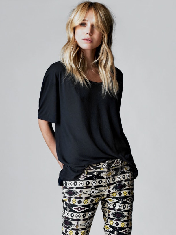 Erhältlich im Guess Store Zürich: feines T-Shirt, 79 Fr. und gemusterte Hose, 349 Fr.