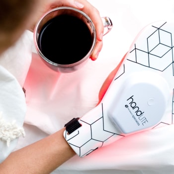 Wasser, Seife, Sonne, Desinfektionsmittel – die Haut der Hände ist diesen Strapazen Tag für Tag schutzlos ausgesetzt. Und das lässt sie schneller altern. Ein regelmässiges Treatment mit dem HandLite von Rio hilft, stumpfe und alternde Haut zu revitalisieren, feine Linien, Fältchen und Verfärbungen zu reduzieren und die Hautfestigkeit zu verbessern. Dazu reichen zehn Minuten je Hand aus.