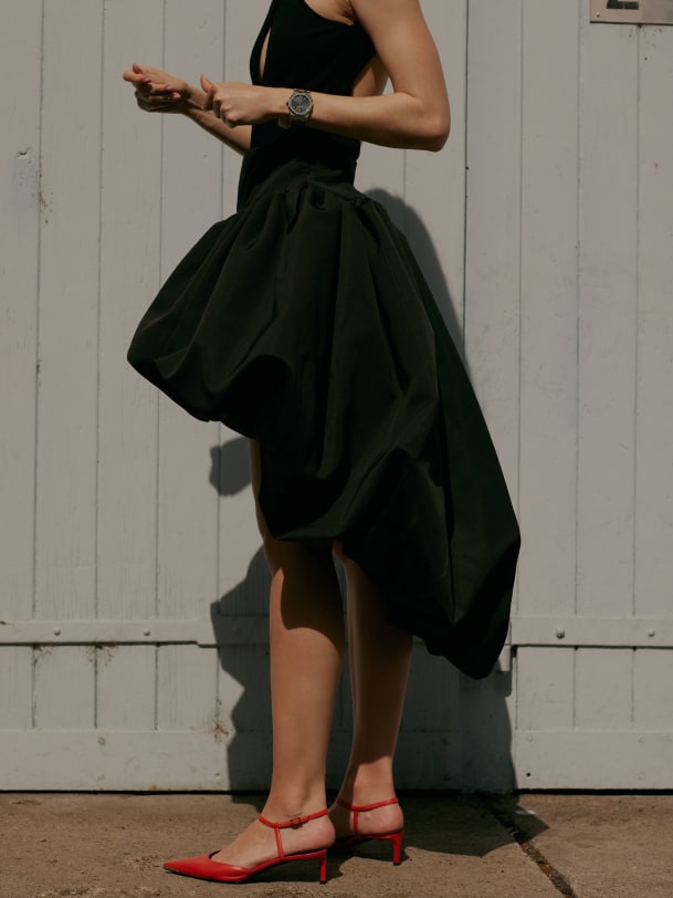 "Es war nicht einfach", sagt Jacqueline Dimier. "Die Uhr war kaum vier Jahre alt, durch und durch männlich. Die Kreation des legendären Gérald Genta zu adaptieren, war eine gewaltige Herausforderung. Mein Ansatz war es, den wesentlichen Charakter der Uhr als Zeitmesser zu bewahren und mich auf die Proportionen zu konzentrieren. Ich wollte, dass die Uhr gross bleibt, was bei den Damen damals überhaupt nicht im Trend lag." Das Ergebnis des neuen Designs: Die femininste Version einer ursprünglich maskulinen Uhr.