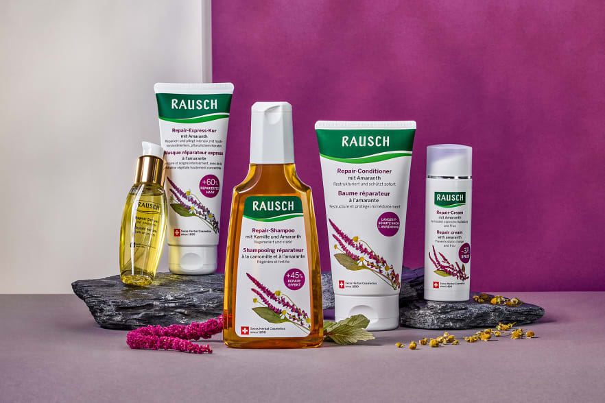 Mit der neuen Repair-Express-Kur mit Amaranth schreibt Rausch die Erfolgsgeschichte bis heute fort. Die innovative Haar-Kur ergänzt die bewährte Pflegeroutine der Repair-Linie optimal und sorgt dank ihres pflanzlichen Keratin-Komplexes in Rekordzeit für vitalisiertes Haar. Nach dem Training oder morgens unter der Dusche lässt sich die Repair-Express-Kur mühelos in die Alltagsroutine einbetten. Schnell einmassieren, 60 Sekunden einwirken lassen, ausspülen und das Haar wirkt sofort kraftvoller und geschmeidiger.